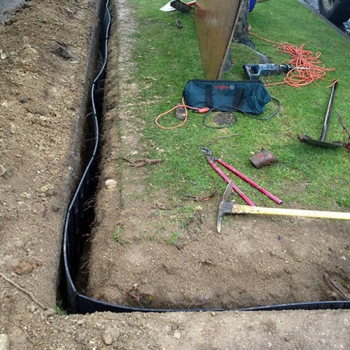 HuPlastic Root Barrier ’s Low Density Polyethylene (LDPE) and High Density Polyethylene (HDPE) formulation.It is tough, flexible and it will never rot, rust, splinter or crack.